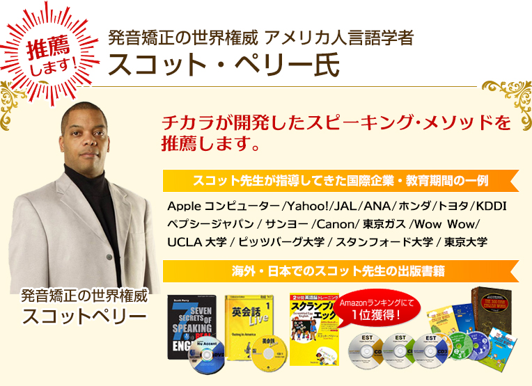 ネイティブスピーカーと長年一緒に過ごしたチカラは英語のスキルだけでなく、英語で自然にコミュニケーションをするのに必須である英語の文化的知識も備えています。英語を自由自在に操る彼ですので当然ながら言語を学ぶ秘訣をよく知っていますし、彼のマニュアルがあなたの英語上達の役に立つこと間違いありません。チカラは多くの人達の英語上達の役に立ちたいという願望がありそしてコミュニケーションの才能があるチカラは素晴らしい先生だと思います。